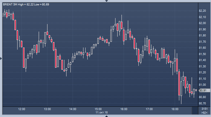 Цены на нефть снижаются в реакции на рост добычи и вслед за американскими акциями, задающими настроение по уходу от риска. Падению рынка в четверг также способствует понижение Организацией стран-экспортеров нефти (ОПЕК) прогноза роста спроса на нефть в 2018 году. Картель снизил прогноз роста спроса на нефть в этом году на 80 тысяч баррелей в сутки - до 1.54 миллиона б/с. По итогам этого года ОПЕК теперь ожидает спрос на нефть на уровне 98.79 миллиона б/с.