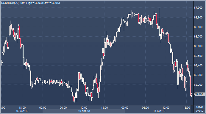 На торгах в четверг 11 октября курс рубля по отношению к доллару вырос более чем на 1% до 66.10. Тем самым российская валюта полностью отыграла потери предыдущего торгового дня.