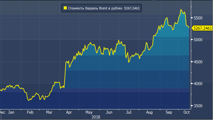 В результате в начале апреля баррель нефти стоил около 3 900 рублей, а к началу октября поднялся до 5 700 рублей, снизившись к настоящему моменту до 5 270 рублей. Увеличение более чем на 35%. Правительство России не может не радоваться тому, что страна в рублях стала больше зарабатывать на продаже ключевого экспортного товара.