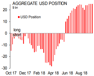 Из последнего отчета CFTC следует, что за неделю до 16 октября объем чистой длинной спекулятивной позиции по доллару почти не изменился, оставшись в области многолетних максимумов, однако трейдеры заметно сократили риск в большинстве основных валют. Снижение открытого интереса наблюдалось в иене, евро, луни, аусси и киви. Наиболее заметные изменения в спекулятивном позиционировании произошли в иене и евро: в первой валюте объем чистого шорта заметно сократился, а во второй заметно вырос. Иена остается наиболее проданной валютой, а за ней следуют аусси, евро, фунт, киви и франк. Медвежье позиционирование по луни минимально, а мексиканский песо остается единственной купленной против доллара валютой из основных.