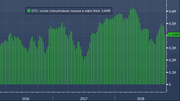 За неделю до 16 октября крупные спекулянты сократили объем чистой длинной позиции во фьючерсах и опционах на нефть Brent на 66 403 контракта до 409 118 контрактов (7-недельный минимум), следует из последних данных американской Комиссии по торговле товарными фьючерсами (CFTC).