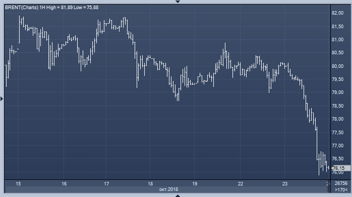 По итогам торгов во вторник 23 октября курс доллара к рублю вырос на 33 копейки до 65.55, а курс евро к рублю - на 32 копейки до 75.13 (прим. ProFinance.ru: по состоянию на 23:50 МСК).