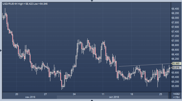 Жесткая риторика Банка России не помогла рублю — он с новыми силами возобновил снижение и в паре с долларом предпринял еще одну попытку пробить минимумы последних двух недель. Пока это ему не удается, однако тон торгов в USDRUB остается приподнятым, а на часовых графиках наблюдается формирование потенциальной перевернутой головы и плеч. Прорыв ее линии шеи обеспечит свежий импульс для роста в направлении 67 рублей за доллар США, при этом материализация такого сценария даст повод заговорить уже о другой, более крупной модели основания.