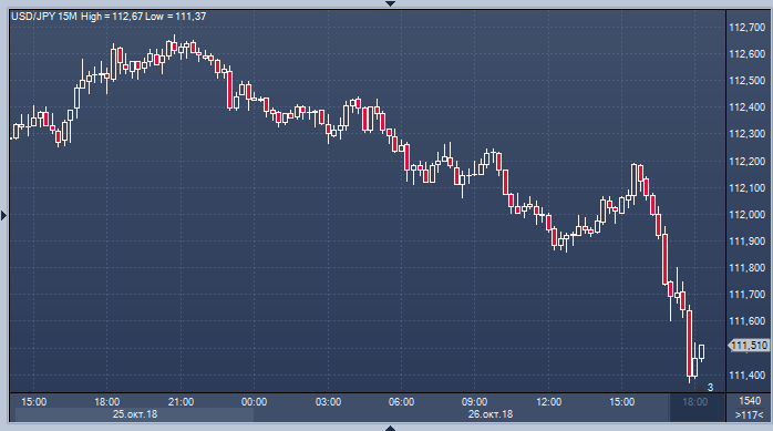 Индекс доллара США в пятницу утром в Нью-Йорке вырос до двухмесячного максимума 96.860 против корзины валют после того, как данные по ВВП США за третий квартал превысили прогнозы. Однако к настоящему момент ввиду сильного падения фондового рынка наметился стремительный рост такого защитного актива как иена. Рост последней против доллара привел к отступлению американца против евро и фунта.