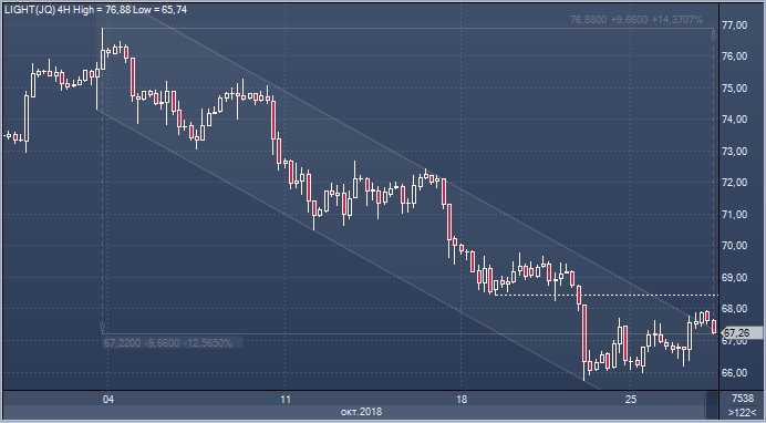 Началась последняя торговая неделя октября. В понедельник цены на нефть марки WTI предприняли попытку подняться выше $68, но отскочили обратно к $67.15 за баррель. Участники нефтяного рынка в некотором замешательстве на фоне противоречивых комментариев со стороны ключевых производителей.