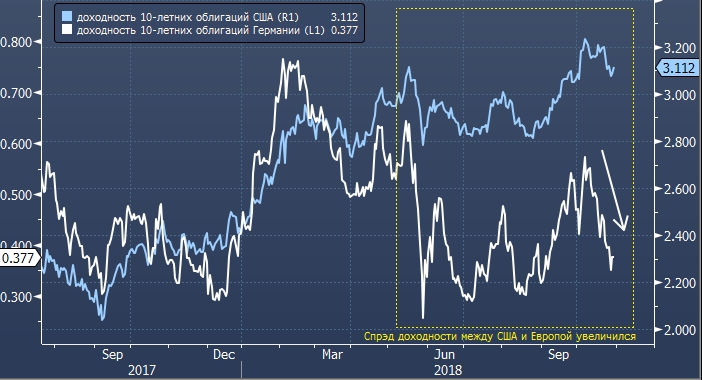 Но в текущей ситуации монетарная политика ФРС США является ястребиной. Центробанк повышает ставки. В то же время Европейский центральный банк (ЕЦБ) остается голубем и обещает не повышать ставки как минимум до лета 2019 года.