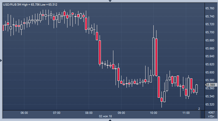 Пара доллар/рубль расчетами “завтра” к 11:10 мск торгуется возле была вблизи 65.56, и рубль набирает четверть процента от уровней предыдущего закрытия. Евро расчетами “завтра” сейчас у отметки 74.95, и здесь рубль растет на 0.1 процента.