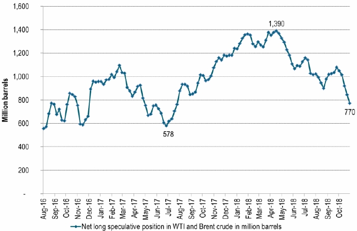 Чистые спекулятивные покупки фьючерсов на Brent и WTI на прошлой неделе составили 770 млн баррелей. Это почти на 50% ниже пика середины апреля (1 390 млн баррелей).
