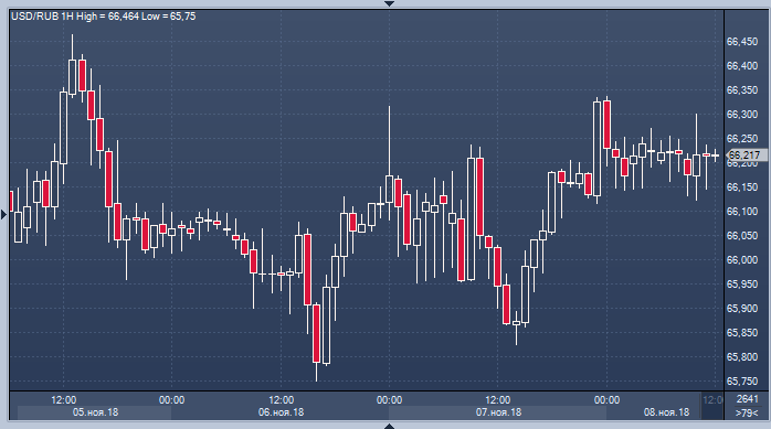 Курс рубля прибавляет около 10 копеек от уровней открытия торгов четверга на Московской бирже. Вчерашний рост рынка акций в США подстегивает спрос на рисковые активы, а заявления о том, что ОПЕК+ рассматривает возможность очередного сокращения добычи в 2019 году, наряду с данными по росту импорта черного золота в Китай спровоцировали подъем цен на нефть утром в четверг. Эти факторы наряду с активностью российских экспортеров помогают держаться рублю уверенно в отсутствие на рынке Центробанка, который взял паузу до конца года.