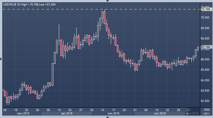 Курс рубля сегодня обновил минимум с 11 октября. О прогнозах Сбербанка и г-на Орешкина о 63, наверное, уже можно забыть. Сегодня российская валюта торгуется к доллару на 4.6 рубля выше этого уровня. И попадание в поле зрения сентябрьских минимумов в районе 70.70 поднимает вопрос о том, носит текущее снижение рубля локальный характер или же началась новая волна глобального снижения активов развивающихся стран, которая утянет за собой и рубль. Ряд экспертов говорят, что здесь все будет зависеть от развития торгового конфликта США и Китая. Одновременно аналитики считают, что ротация сил в американском конгрессе никак не снизит активности Трампа при давлении на Пекин.