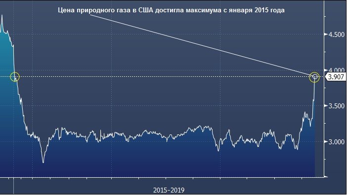 Декабрьские фьючерсы на природный газ, которые торгуются на бирже NYMEX, достигли в понедельник 12 ноября нового пика на уровне $3.9 за миллион британских тепловых единиц (MMBtu). Это максимальная цена с января 2015 года. Рост с начала ноября превысил 16%.