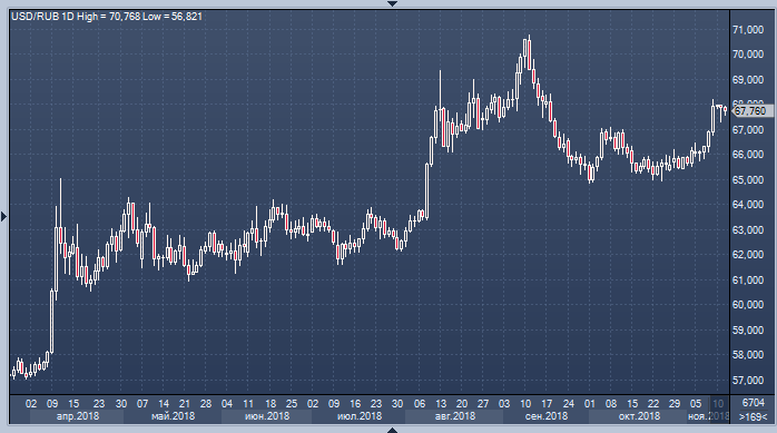 В банке считают, что эффект введенных в отношении России санкций и рост ставок в США полностью нивелировали благоприятное влияние паузы в интервенциях Банка России на рубль. Российская валюта теперь оказалась заложницей коррекции цен на нефть, при этом давление на нее также оказывает сохраняющееся беспокойство относительно возможности введения новых санкций. Напряженность инвесторов вкупе с погашением внешнего долга и возможным неполным поступлением валютной выручки могла стать причиной повышенного спроса на валюту, для удовлетворения которого предложения пока недостаточно. В Райффайзенбанке предупреждают, что при сохранении цен на нефть около $70 за баррель и курса доллара к рублю в 68 сальдо текущего счета в ноябре-декабре составит лишь $12.5 млрд, а этого не хватит для компенсации выплат по внешнему долгу в $14.3 млрд и оттока капитала нерезидентов с рынка облигаций федерального займа. Это дает повод опасаться ослабления рубля, а также ставит под вопрос возобновление покупок валюты для Минфина с началом 2019 года — в текущих условиях такой шаг выглядит маловероятным.