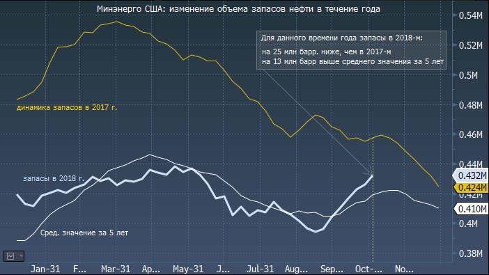 Стоит отметить, что в тот же период времени прошлого года запасы стабильно снижались.