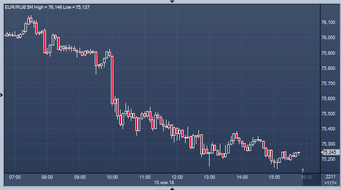 - 75.5358 рубля за 1 евро