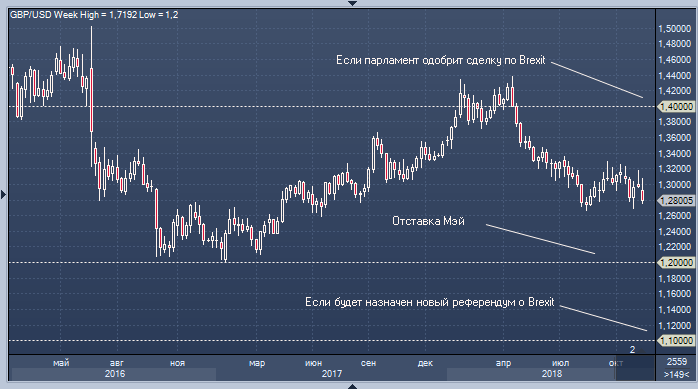 Вотум недоверия Терезе Мэй или новые выборы, которые вынудят ее уйти в отставку, отправят стерлинг на $1.20. Но если она удержится на посту и сумеет провести соглашение о разводе через парламент, фунт будет укрепляться в 2019 году. Как только соглашение пройдет через парламент, рынки будут сосредоточены на фундаментальных показателях экономики Великобритании.