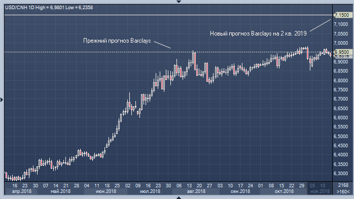 Юань, вероятно, станет слабее на 2%-3% по торгово-взвешенному индексу в 1-м полугодии 2019 года, поскольку США облагают китайскую продукцию большими тарифами, считают валютные стратеги Barclays Хэмиш Пеппер (Hamish Pepper), а также Критика Кашьяп (Kritika Kashyap), о чем они написали в аналитической записке для своих клиентов в четверг. Это подразумевает движение юаня до 7.15 за доллар ко 2 кварталу против предыдущего их прогноза 6.95, отметили в Barclays.