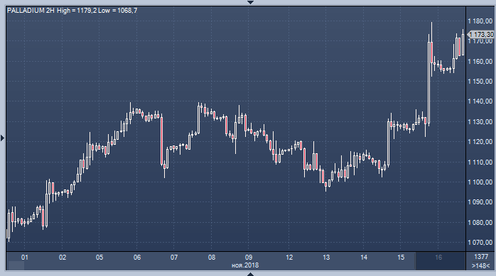 5 ноября World Platinum Investment Council (WPIC) опубликовал отчет, в котором предупредил, что изменение стандартов эмиссии автомобилей в Китае в рамках борьбы за нормализацию экологии предполагает усиление темпов роста спроса на металлы платиновой группы, в число которых входит и палладий. В условиях и без того ограниченного предложения на рынке эти новости дали повод для срыва стопов выше сопротивления в районе $1140, что обеспечило импульс для ралли палладия к новому рекордному максимуму в районе $1179.20 за унцию.