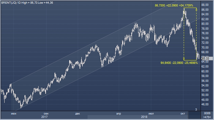 В начале октября стоимость Brent в российской валюте достигла наивысшего значения за всю историю на уровне 5 670 рублей за баррель. Это происходило на фоне разнонаправленной динамики: нефть дорожала, ожидая введение санкций США в отношении Ирана, рубль дешевел, опасаясь более жестких санкций со стороны США.