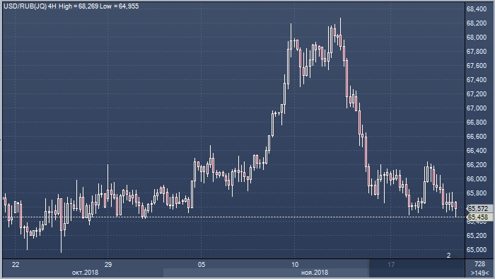 Курс доллара по отношению к рублю на утренних торгах в четверг 22 ноября перед началом регулярной сессии в валютной секции Московской биржи опустился ниже 65.50. Таким образом, российская валюта полностью отыграла свои потери первой половины ноября. Курс опустился до самой низкой точки с 31 октября 2018 года.