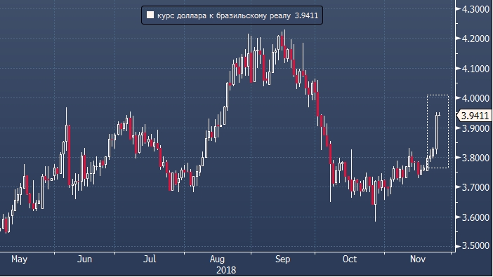 После второго тура президентских выборов, который прошел в конце предыдущего месяца реал достиг самого слабого уровня к доллару со 2 октября — 3.95 за единицу американской валюты. Эксперты объяснили обесценивание бразильского реала падением цен на железную руду, ухудшением торговых условий, оттоком капитала из страны, которое связано с дивидендными выплатами компаний.
