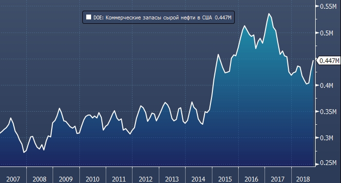 Напомним, что в конце марта 2017 года коммерческие запасы сырой нефти в США достигли рекордного объема в 536 млн баррелей (ProFinance.ru: 10 лет назад, например, они были ниже 300 млн баррелей). После этого запасы довольно стабильно снижались и в начале сентября 2018 года опустились до 3.5-летнего минимума чуть ниже 400 млн баррелей. С тех пор они уверенно растут.