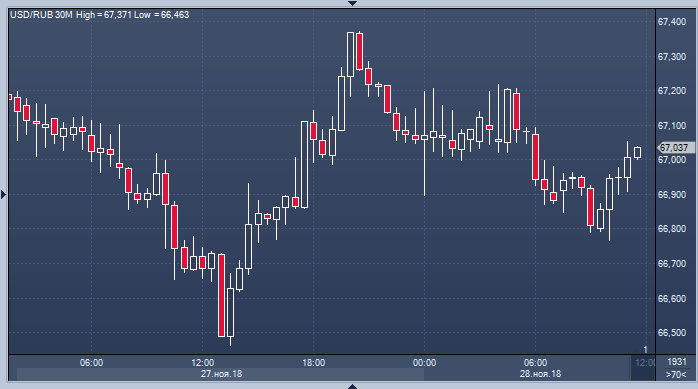 Однако рублю сегодня помогает не только политика. Несмотря на рост запасов сырой нефти, согласно отчету Американской института нефти, вчера мы допускали рост цен на нефть. Просто повторим здесь то, о чем мы писали вчера. Рынку нужно задержаться на $60, чтобы оценить, как упавшие цены простимулируют свежий спрос. Экономисты ранее утверждали, что текущие цены балансируют долгосрочные спрос и предложение. А это значит, что в районе $60 за баррель спрос должен немного увеличиться, а предложение — немного сократиться. Рынку нужно время, чтобы убедиться в справедливости данного тезиса. Другой момент — предстоящая встреча ОПЕК+ 6 декабря. Вряд ли кто-то из спекулянтов захочет шортить сырье на глазах у Саудовской Аравии, которая устами своего министра энергетики Фалиха заявляет о необходимости сокращения производства в следующем году на 1.4 миллиона баррелей в сутки.