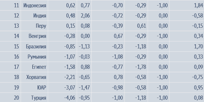 Предыдущий рейтинг был опубликован 1 июня. Тогда Турция была на 5 месте среди государств с развивающейся экономикой. В общей сложности рейтинг охватывает 21 страну. Однако в текущей версии рейтинга по состоянию на 28 ноября Турции досталось последнее место.