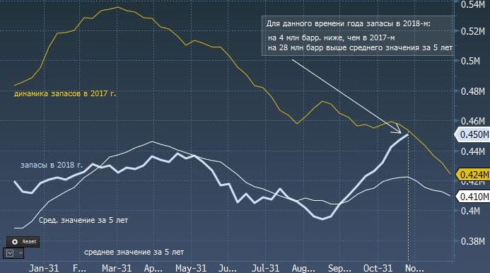 Дело в том, что, во-первых, официальные цифры отчета показали почти такое же сокращение запасов сырой нефти, как отчет API. Во-вторых, в Штатах перестала расти добыча нефти. В-третьих, в США очень сильно растет спрос на нефть. Это показали данные о спросе как со стороны НПЗ, так и данные по импорту, расходованию стратегического резерва, потреблению. То есть в целом, на наш взгляд, отчет дает рынку повод задержаться в районе психологического рубежа в $60 за баррель до заседания ОПЕК+ 6 декабря.