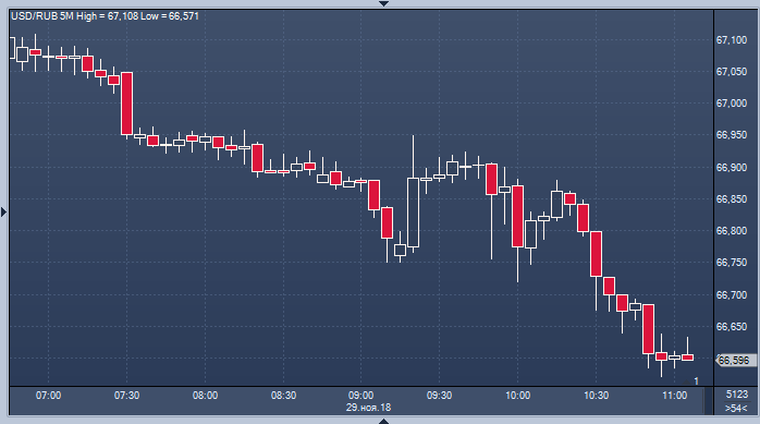 Рубль наслаждается спокойствием на внешнеполитической сцене и ждет заявленной встречи Путина и Трампа на саммите G20, стартующем завтра. Вчера рубль не обрадовался информации о том, что Центробанк готовится возобновить покупку валюты в начале 2019 года.
