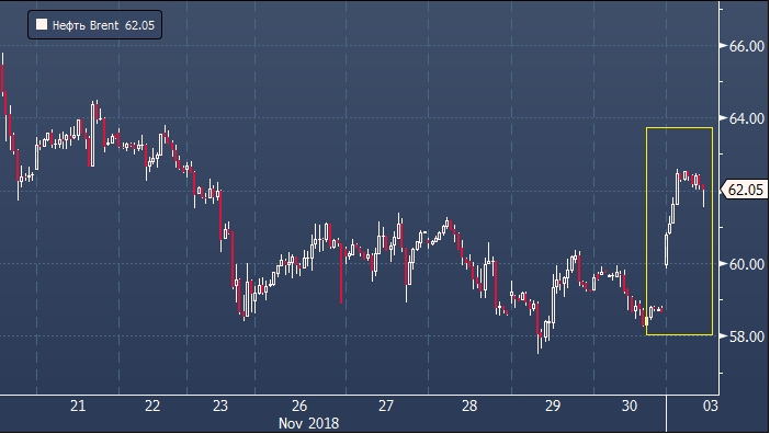 Февральские фьючерсы на нефть марки Brent растут на 5% в понедельник 3 декабря до $61.78 за баррель. Январские фьючерсы на нефть WTI, которые экспирируются 19 декабря, растут в цене на 4.95% до $53.17 за баррель. Инвесторы рынка нефти начинают закладываться в своих торговых решениях на то, что крупнейшие производители готовы принять меры после того, как в ноябрь стал наихудшим месяцем за последние 10 лет. Саудовская Аравия и Россия дали политическое благословение соглашению о сокращении производства, которое должно быть заключено 6 декабря на саммите ОПЕК в Вене. Хотя остаются вопросы относительно величины сокращения, рынок позитивно отреагировал на эту информацию.