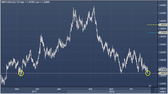 Курс британской валюты к доллару накануне сформировал дно в области 1.2657. Это самое низкое значение с 22 июня 2017 года.