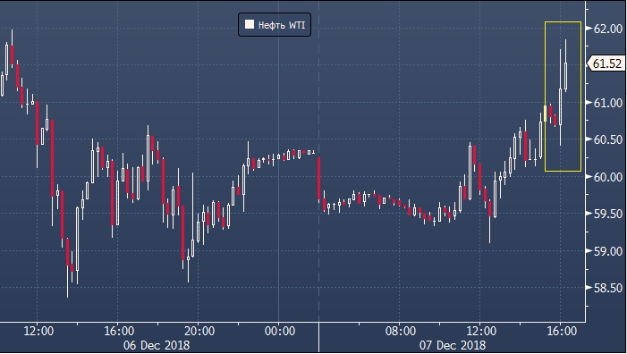 Ранее агентство Reuters в своем твиттере разместило сообщение в формате Breaking news, согласно которому Иран дал согласие на сделку ОПЕК. Котировки февральских фьючерсов на Brent подскочили выше $61.50 за баррель после того, как финансовые СМИ распространили сообщение Reuters.
