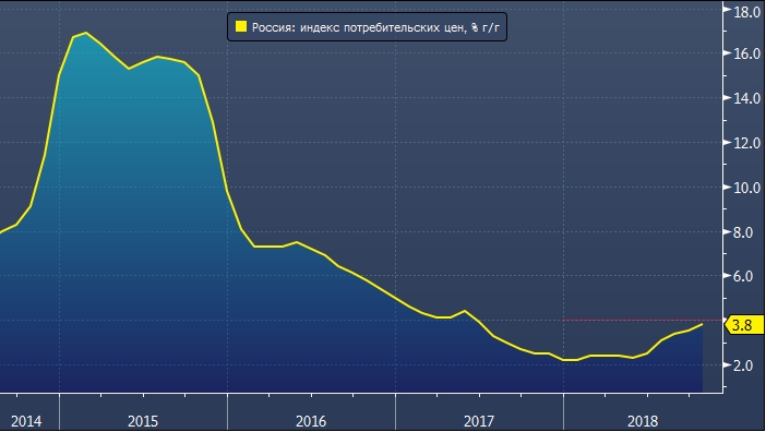 Сейчас инфляция близка к прогнозным значениям Банка России, но весьма вероятно, превысит цель, которую регулятор установил на уровне 4% годовых.