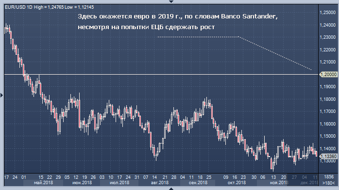 ЕЦБ может попытаться удержать евро против доллара, если ФРС займет аналогичную осторожную позицию на декабрьском заседании или в начале 2019 года, говорит Стюарт Беннетт, глава отдела валютной стратегии по группы 10 ведущих валют в Banco Santander.