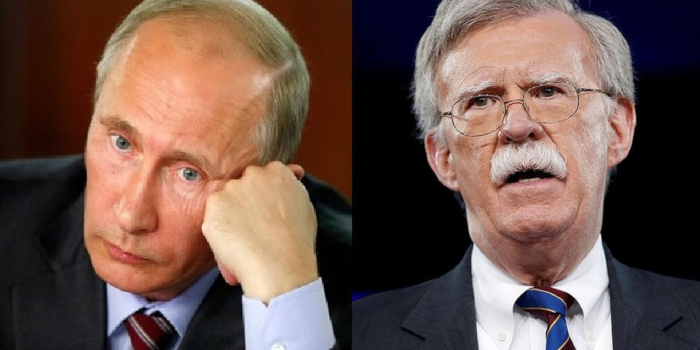 На фото: президент России Владимир Путин и советник президента США по вопросам нацбезопасности Джон Болтон