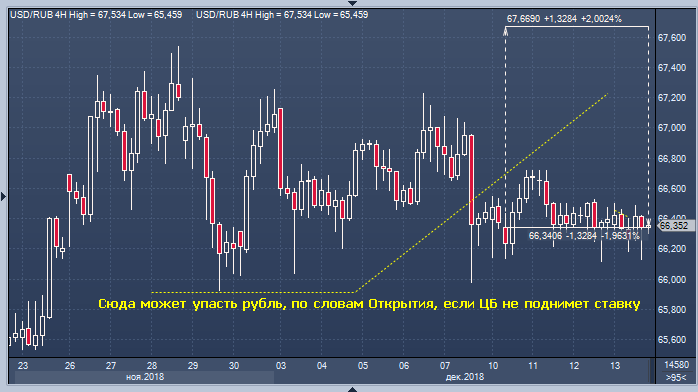 Сегодня рубль малоактивен, ожидая решения ЦБ по ставке и интервенциям. Отскок нефти Brent, как и заявления Болтона о невозможности встречи Трампа и Путина, остались незамеченными участниками рынка. Также ЦБ должен сообщить, когда вернется на рынок с покупкой валюты для Минфина в рамках исполнения бюджетного правила. Вероятно, это произойдет после новогодних праздников. Решение по интервенциям способно оказать сильное влияние на котировки рубля, признают многие аналитики в своих обзорах.