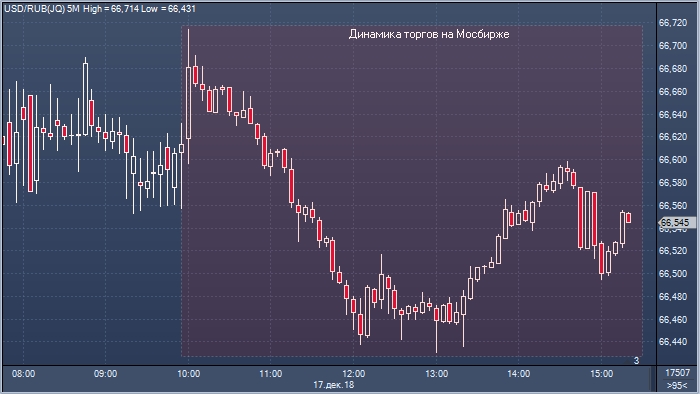 Курс рубля в момент открытия торгов в валютной секции Московской биржи предпринял попытку ослабления и достиг 66.72 за доллар. После российская валюта стабильно укреплялась и выросла в цене до 66.43. К моменту публикации USDRUB торгуется в районе 66.55. Рубль получает поддержку от цен на нефть: котировки февральских фьючерсов на Brent сегодня дорожают на 1.3%.
