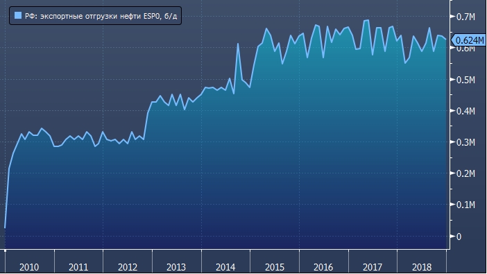 РФ поставила в экспортный план на январь 2019 года 26 отгрузок нефти ESPO (прим. ProFinance.ru: марка сибирской нефти, поставляемая по трубопроводу Восточная Сибирь — Тихий океан). Об этом сообщило агентство Bloomberg.