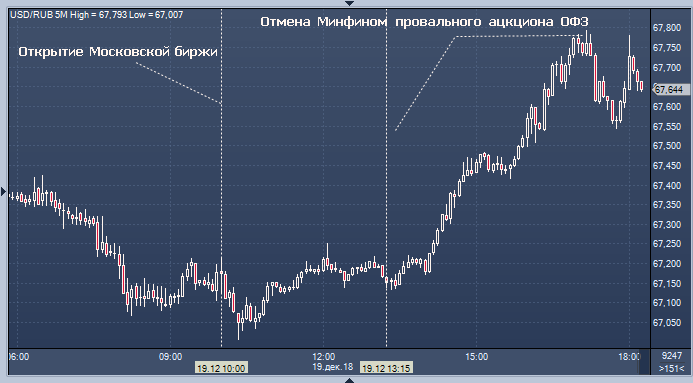 Утром в среду рубль пытался укрепляться, достигнув отметки 67.01 за доллар. Однако нефть оставалась в районе локальных минимумов, что оказало давление на отечественную валюту. К середине московских торгов баррель Brent стоил около 3795 рублей. Однодневная ставка MosPrime выросла до 7.98%, недельная снизилась до 8.02%, а месячная поднялась до 8.30%. В Открытие Брокер считают, что такое положение дел типично для предновогодних дней, когда более длинные ставки заметно отрываются от коротких. Кроме того, налоговые платежи также создают локальный спрос на рублёвые ресурсы.