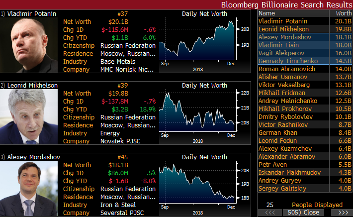Мажоритарные акционеры вышеназванных компаний имеют прочные связи с Кремлем и входят в топ-75 лучших компаний индекса миллиардеров Bloomberg.