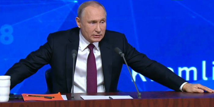 На фото: президент России Владимир Путин на ежегодной пресс-конференции в Москве, 20 декабря 2018 года