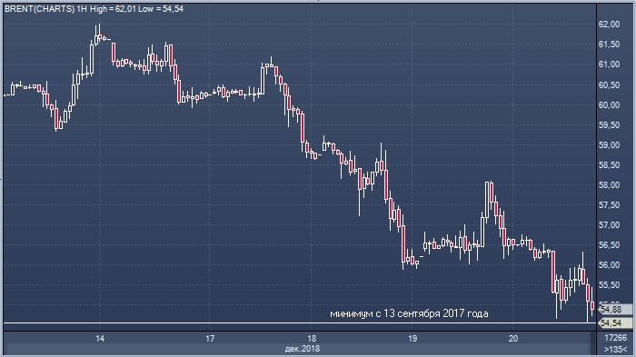 Главным фактором давления стали цены на нефть, которые обновили 15-месячные минимумы. Котировки Brent упали до $54.54 за баррель — худшего значения с 13 сентября 2017 года.