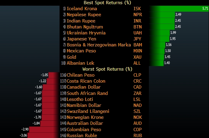 Еще более наглядно: за период с прошлой пятницы 146 валют по отношению к рублю: