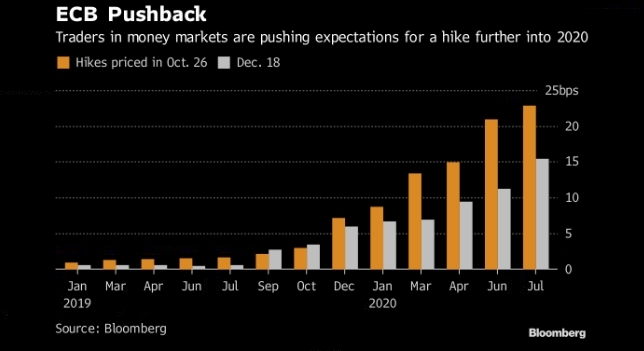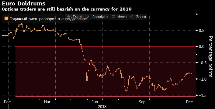 Мнение валютных аналитиков является ответной реакцией на их призыв в отношении 2018 года, когда евро быстро поднялся до четырехлетнего максимума, только чтобы закончить год хныканьем, поскольку «голубиный» Европейский центральный банк и политические риски в Италии и Франции не оправдали надежд быков. Денежные рынки делают ставку на то, что эти риски не позволят политикам повысить стоимость заимствований до 2020 года.