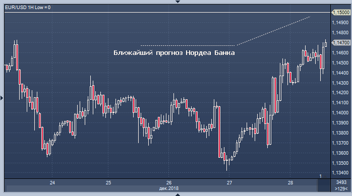 Курс евро почти приблизился к 1.15 против доллара: текущий максимум составил 1.1472. Торги в 14:10 мск пятницы проходят на уровне 1.1471. Главным фактором давления на доллар (USD) сейчас выступает продолжающаяся приостановка работы американского правительства, отмечают в банке Нордеа. По последним данным, администрации Трампа возобновит полноценную работу не ранее 2 января 2019 года. Судя по прошлым эпизодам приостановки работы правительства, доллар в такие периоды, как правило, находится под давлением.