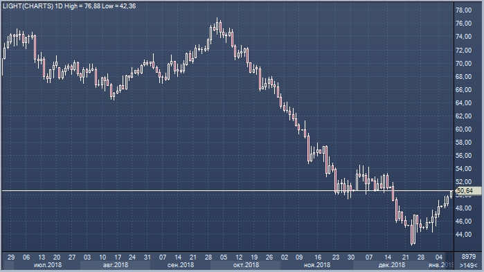 Котировки февральских фьючерсов на WTI отреагировали ростом на цифры API. В течение азиатской сессии был достигнут уровень 50.64 за баррель. Таким образом, цены вернулись в диапазон, в котором пребывали в первой половине декабря, отыграв падение второй половины последнего месяца года.