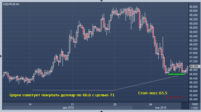«Ну, а „стоп-лосс“ сработает в случае пробития вниз 65.5 (маловероятно). Цель повышения — 68.3 или 71», — написал эксперт.