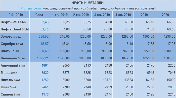 Brent в декабрьском прогнозе в 1 и 2 кварталах 2019 года прогнозировалась на уровне $77 и $76.75 за баррель соответственно. В свежем январском прогнозе $67.00 и $68.50 соответственно.