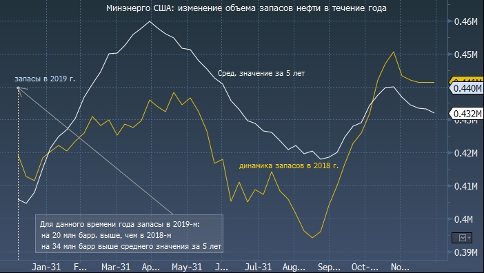 Согласно прогнозу экспертов, опрошенных агентством Bloomberg, цифры этого ведомства покажут в четверг, что в США за отчетный период (в баррелях):