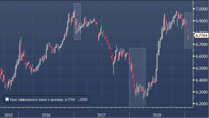В январе 2017 г. юань подорожал на 2.2%. При этом китайская валюта стабильно укреплялась в течение всего года. В январе 2018 г. юань прибавил в цене 3.4%. Однако с апреля курс возобновил тенденцию к ослаблению и к ноябрю китайская валюта упала почти двухлетнего минимума.